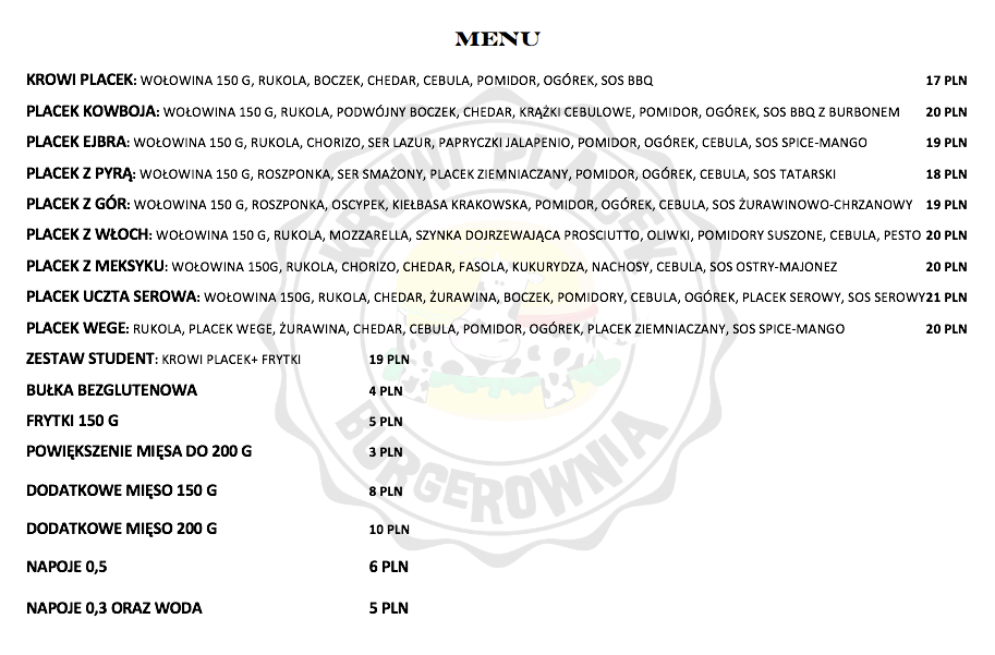 Nasza wyśmienita kuchnia zafascynuje Cię swoim szerokim wyborem pysznych dań i napojów. W naszym lokalu możesz delektować się naszymi soczystymi burgerami – z przyjemnością pomożemy Ci w wyborze.